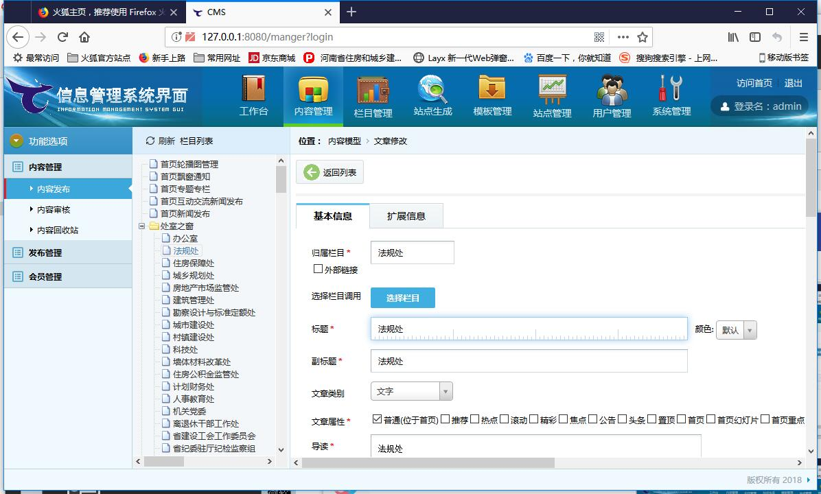 2)欄目管理:可實現對網站欄目的增加、修改、删除。